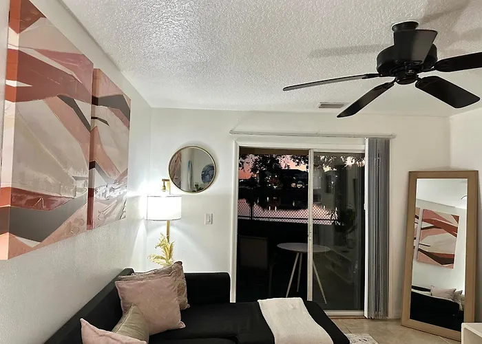 Set nearly a 10-minute ride from Airport Lakes Park, the 2-room 2Br 2Ba Retreat 10 Min From Orlando Int Airport Apartment comprises a patio and a dressing area overlooking the lake.